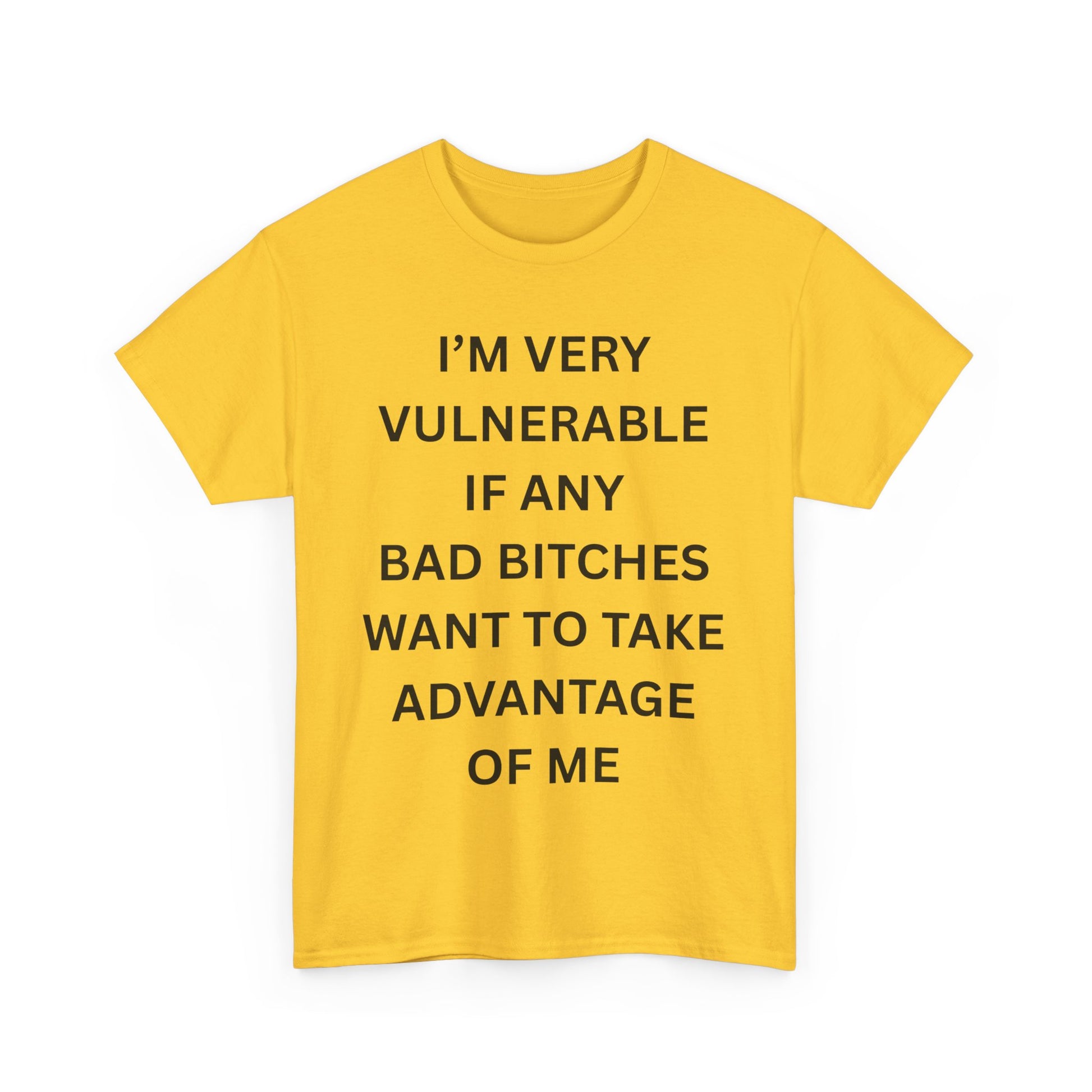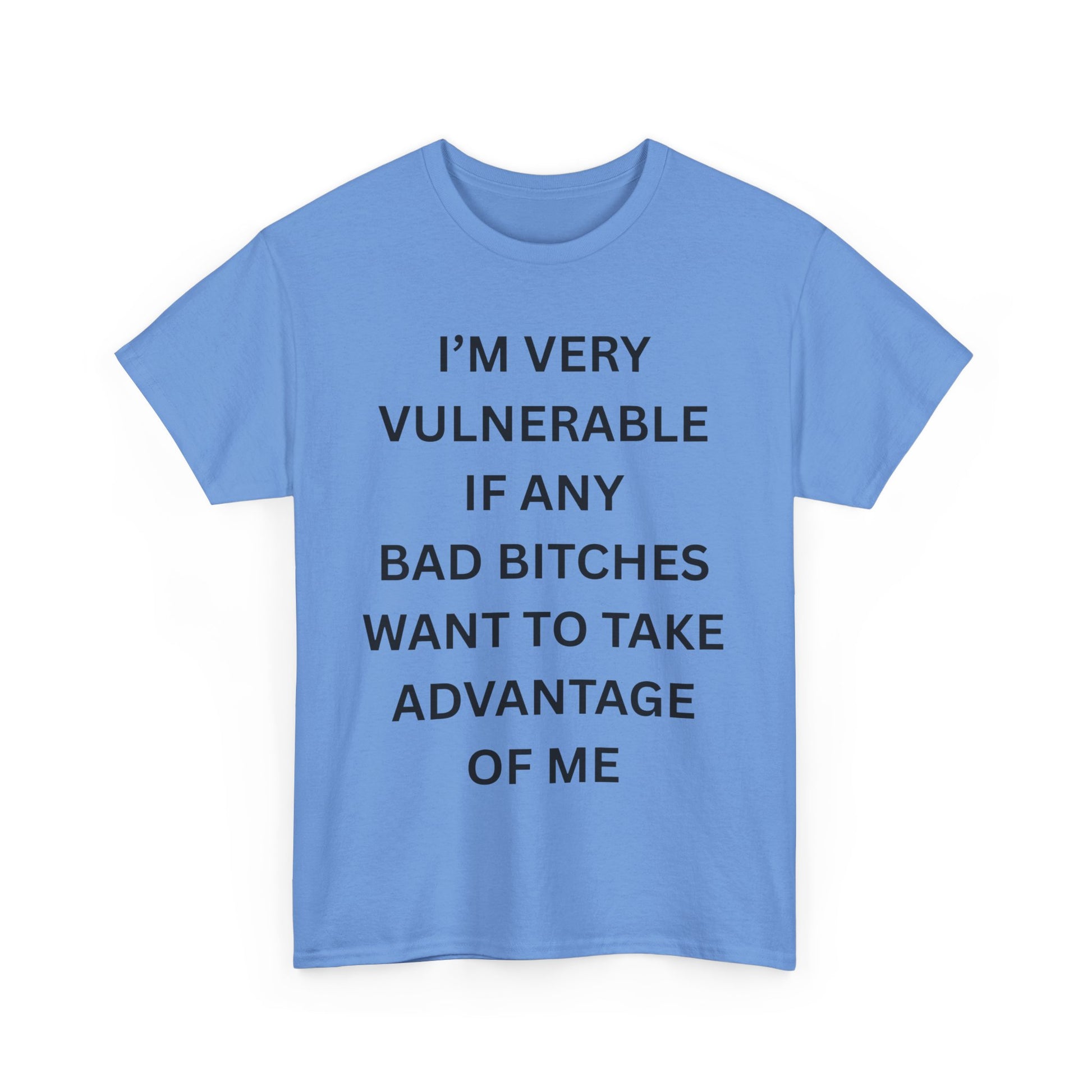 You’re not looking for love—you’re looking for danger in a crop top. The “I’m Very Vulnerable If Any Bad Bitches Want to Take Advantage of Me” tee is for soft boys, certified simps, and anyone who would gladly ruin their life for someone with lashes and zero empathy.